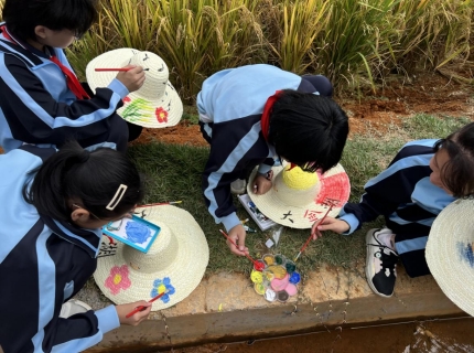 體驗(yàn)的快樂和汗水激發(fā)了孩子們的興趣,水稻田旁,孩子們用豐富的色彩,在草帽上留下了自己的奇思妙想,孩子們相互交流,處處歡聲笑語,吸引了路過的游客駐足觀賞。